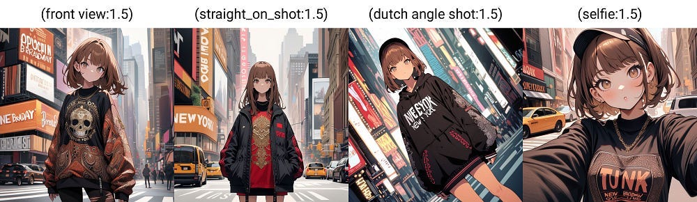 dutch angle shotmaintains a 45-degree tilt while keeping the subject frontal.selfiesadd a touch of cuteness with hand-held self-portraits and inherent beautification effects.