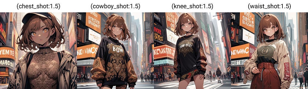 upper body,portraitdepict the head and shoulders.medium shot,chest_shot,half bodywill show body above waist.cowbody_shot,knee_shotwill show body above thigh.For instance, resolving the issue with