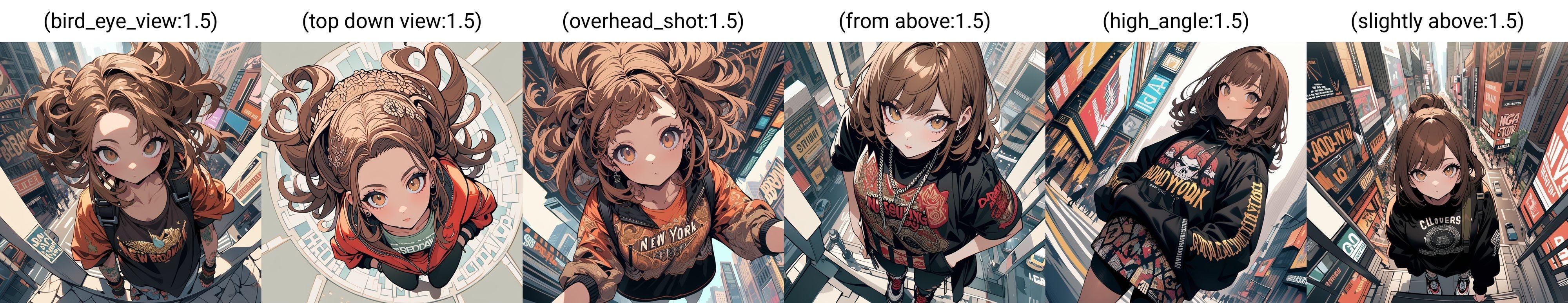 bird_eye_viewintroduces barrel distortion in the background.high_anglelikebird_eye_viewortop down viewoffer elevated perspectives.overhead shotsandfrom aboveminimize background distortion.high_angleorslightly aboveperspectives are slightly lower.