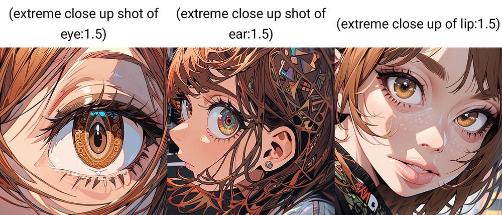 extreme close up shotresembles proximity without the eye enlargement effect seen in SD 1.5.To achieve eye enlargement, append